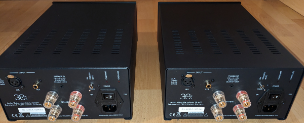 Etwa drei Jahre alt, sind diese modernen Nachfolger der M1 etwa doppelt so leistungsstark ausgelegt wie die M1. Sie sind etwas besser ausgestattet, besitzen nicht nur je eine Eingangs-Buchse, sondern gleichzeitig heraus geführte symmetrische XLR- wie auch Standard RCA-Eingänge. Der Standby-Verbrauch liegt bei modernen 0,3W, da halten auch meine umgerüsteten M1 nicht mit. Es gibt einen AVM-Trigger-Eingang zum ferngesteuerten Einschalten und der 3fach-Modus-Schalter kennt daher eben auch "Trigger" - und nicht nur "ON" und "Auto", wie bei der M1.