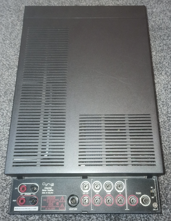 mit einer Handvoll anderer Briten teilt dieser Cyrus einen nach wie in der Summe der Eigenschaften vor kaum zu verbessernden Innen-Aufbau. Das schmale "shoe-box"-Gehäuse beinhaltet eine passive Signal-Umschaltung und Lautstärke-Reglung und führt deren Ausgang direkt einer kompakten und gut versorgten Endstufe zu. Diese Endstufe wurde in Beziehung auf Zuverlässigkeit, Ein/Ausschalt-Verhalten und natürlich in klanglichen Aspekten aufwändig und lange entwickelt und immer wieder anhand ihres Verhaltens verbessert und angepasst.