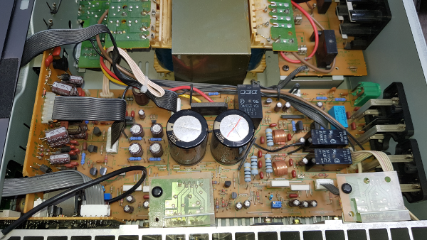 Alle Bedienelemente sind zerlegt, gereinigt und gefettet/geölt wieder zusammen gesetzt worden, genauso wie die Relais-Kontakte der Lautsprecher-Schutzschaltung und die Lautsprecher-Schalter frisch polierte Kontakte haben. Er wird die nächsten Jahre also voraussichtlich kein Kratzen oder Aussetzer produzieren.