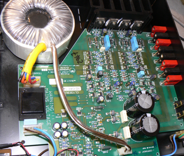Ganz kompakter Aufbau, ausgewogene Schaltung, die per Stromspiegel am Eingangs-Paar allerdings etwas mehr Leerlauf-Verstärkung und daher auch mehr über-alles-Gegenkopplung aufweisen dürfte, als ansonsten ganz ähnliche Endstufen-Konzepte von Naim und Exposure. Das führt zu etwas mehr Dämpfungsfaktor, klingt häufig gerne etwas steriler, gerade wenn die Gesamt-Stabilität des Gegenkopplungs-Konzepts Schwächen hat. Ich muss hier allerdings zugeben: diese LK100 macht sich zumindest nach unserer Neubestückung der Elkos gar nicht schlecht. Zusammen mit der Kairn-Vorstufe bekommt man hier tatsächlich viel Gegenwert für eine sehr robuste, wohlklingende und hervorragend ausgestattete Kombi. Der Zusammen-Verkauf mit der Kairn ist dringend empfohlen, bei Bedarf stehen auch noch die zugehörigen Monitor-Audio-Lautsprecher zur Verfügung, deren Preis ist Verhandlungssache mit dem Vorbesitzer. Abholern können wir die Anlage im Ganzen vorführen.