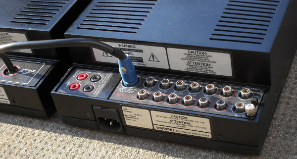 Nach langer Suche habe ich eine Bezugsquelle und eine Bestellnummer für den PSX-Anschluss gefunden, den blauen, dreipoligen Einbau-Stecker des Herstellers Hirose. Wegen Gehäuse-Toleranzen liegt oft die Rastnase dieses Steckers sehr eng an der Buchsen-Blende an und wird daher blockiert oder zumindest schwergängig. Das führt wiederum durch die gewaltsame Handhabung zum häufigen Abbrechen der Rastnase, mit der Folge, dass der Stecker die Kupplung des PSX-Kabels nicht mehr richtig fest hält. Aussetzer an dieser Stelle sind nicht ganz unproblematisch, denn das bedeutet in der Regel, dass eine der beiden Betriebsspannungen in der Endstufe plötzlich weg bleibt. Die Folge sind heftige Verzerrung und Gleichspannung am Lautsprecher-Ausgang. Fehlt also die Nase, soll und kann der Einbaustecker inzwischen erneuert werden (auch die Kupplung ist ersetzbar).