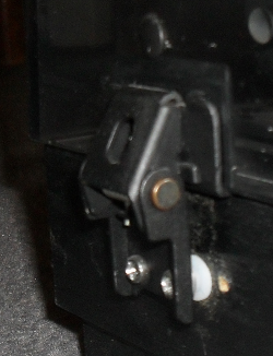 Entsprechend habe ich die Scharniere durch Unterlegen nach hinten versetzt, um den Drehpunkt dahin zu bekommen, wo er ursprünglich gelegen haben muß. Jetzt kann man den Plattenspieler wieder mit geschlossener Haube spielen lassen, die Haube schließt vor allem vorne auch wieder exakt bündig ab.
